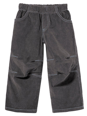 If you love the look and feel of corduroy but also want a softer and more comfortable experience for your kids, try our super soft and stretchy pull-up corduroy pants. Whether your child is attending a semi-formal event or casual event, or you just want nicer everyday pants, these cords are the perfect look. The pull-up elastic waist makes getting dressed easier, and the four pockets and knee articulation add style to the overall appearance. This version with contrast stitching adds a fun pop of color.