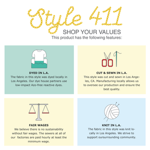 Made with a locally knit and locally dyed thermal cotton blend. Cut, sewn, and garment-dyed in Los Angeles.