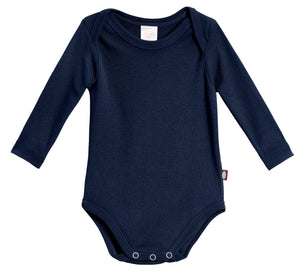 Super-Soft Organic Cotton Baby Rib Long Sleeve Snap Onesie| Navy
