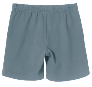 Made from a soft, heavier weight jersey, a fully-elastic waist, and a soft satin care label, these are great for kids with sensory needs or disabilities because they are so flexible and easy to take on and off. Fabric is locally knit and locally dyed, and great for those with sensitivities and allergies. Also has UPF 50+ sun protection.